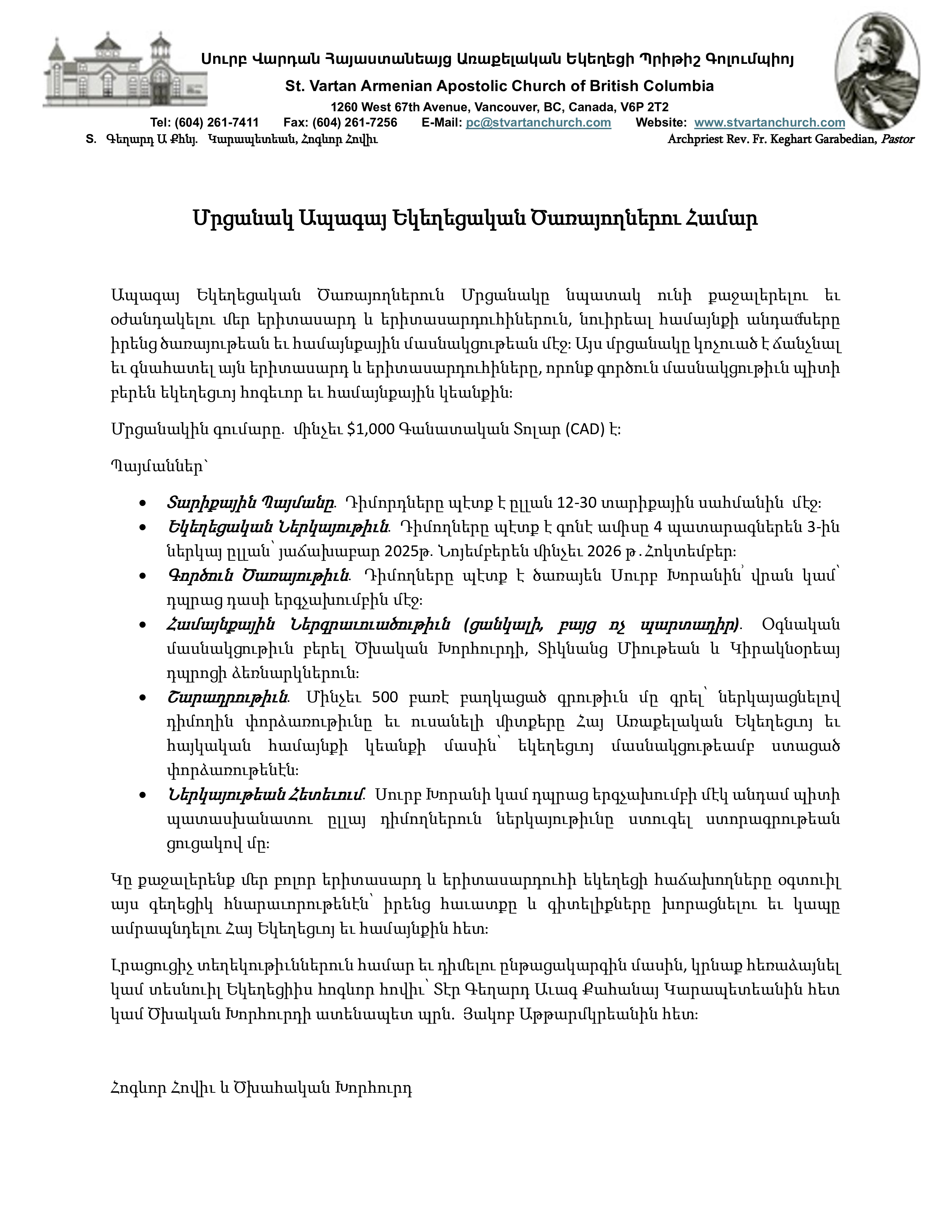 - On this day, traditional Youghakeen donation will be received. We kindly remind our faithful to make their customary Christmas Youghakeen (offering) donation.